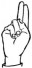 На ћирилици написано МИОДРАГ МЕЋАВА састоји се из 13 слова [?]. Исписано ћириличном једноручном азбуком за глувонеме: